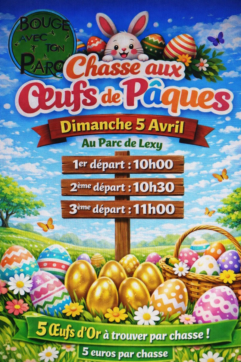 Nous avons le plaisir de vous inviter à notre grande chasse aux œufs de Pâques, qui aura lieu le dimanche 5 avril 2026 au Parc Fernand Collignon de Lexy ! 🐣🌸🍫